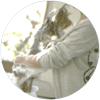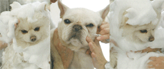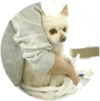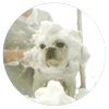 ワンちゃんの肌に、ラテ(オゾンと一緒に作った泡)をなじませるようにグルーミングしていきます。肌全体をマッサージしながら、目、鼻、口、耳の周りなどにも自然にハンドマッサージを施すことでラテをなじませていくグルーミング方法です。